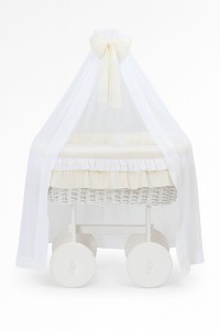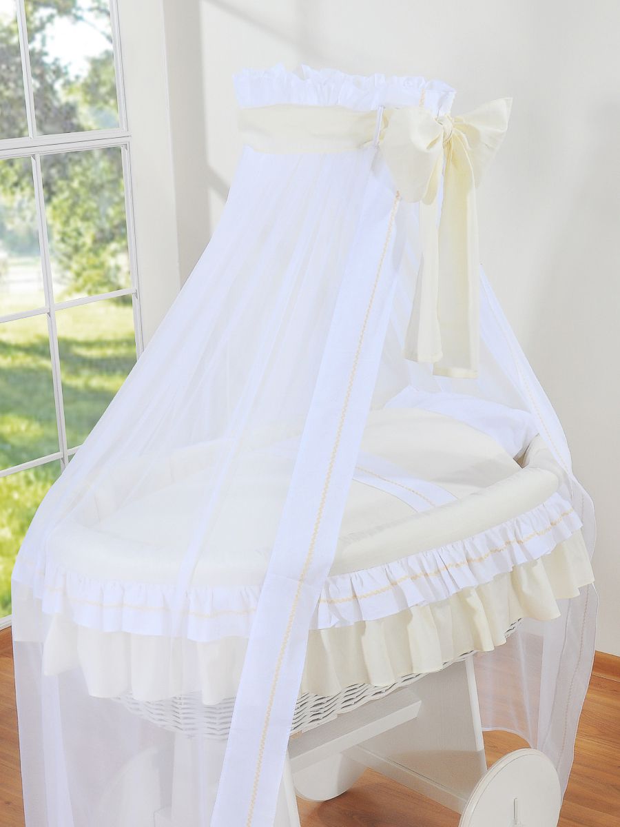 Wiklinowy kosz Mojżesza z baldachimem Deluxe Bellamy - biały + kremowa pościel
