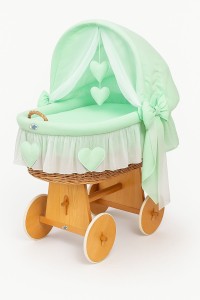 Wiklinowy kosz Mojżesza ze składaną budką Amelia - naturalny + miętowa pościel