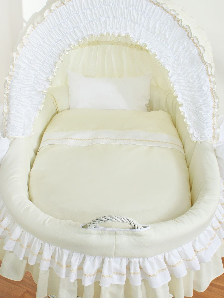 Wiklinowy kosz Mojżesza ze składaną budką Bellamy - biały + kremowa pościel