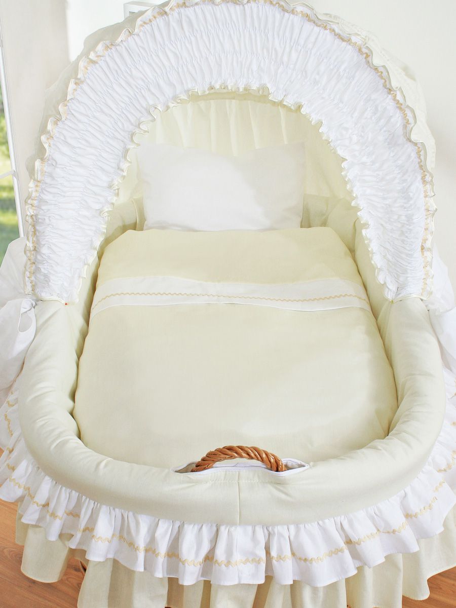 Wiklinowy kosz Mojżesza ze składaną budką Bellamy - naturalny + kremowa pościel