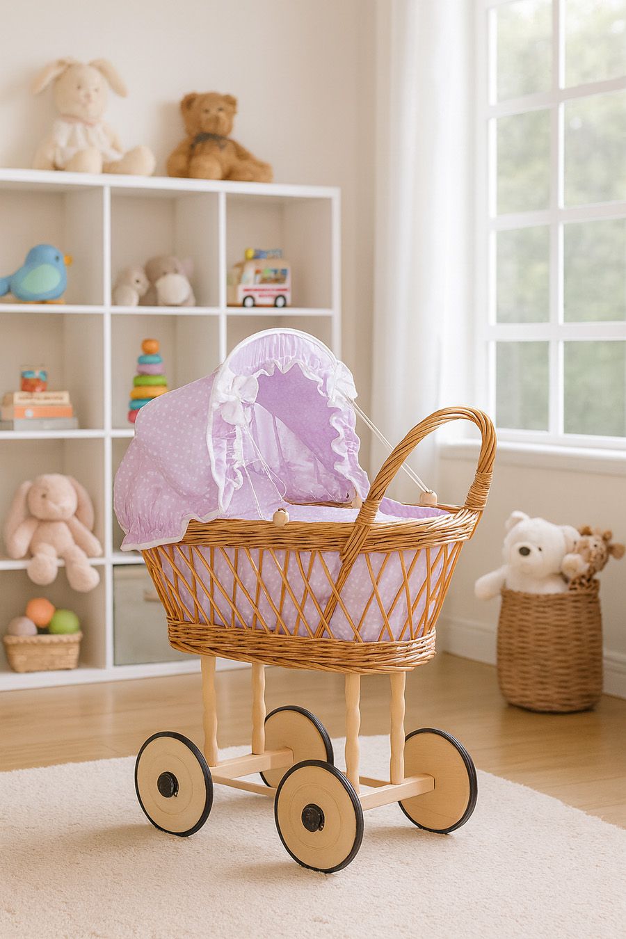 Podaruj swojemu dziecku wyjątkowy prezent! Wiklinowy wózek dla lalek MY SWEET BABY to połączenie tradycji, stylu i jakości. Wykonany ręcznie z naturalnej polskiej wikliny pochodzącej z ekologicznych upraw, zachwyca pięknym, klasycznym kształtem i dbałością o każdy detal.