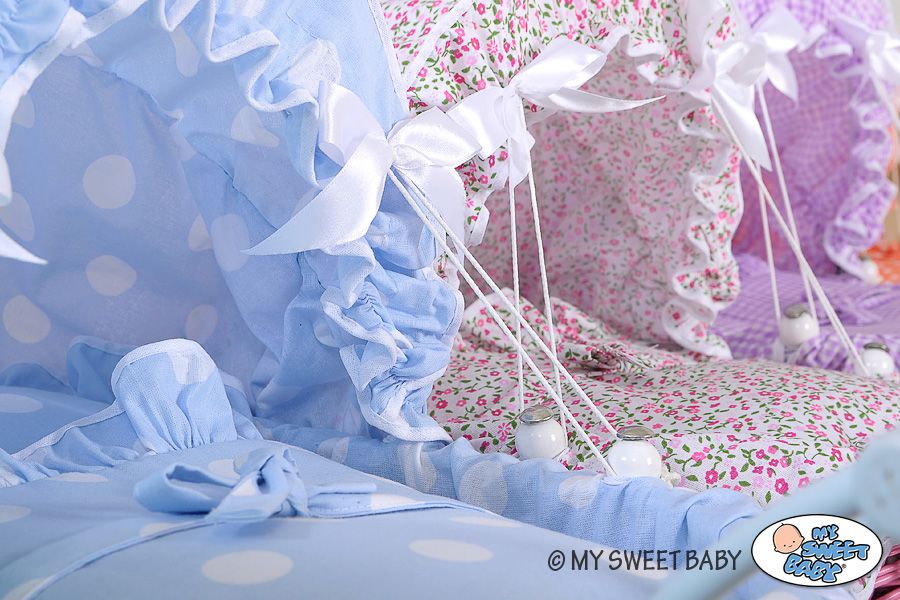 Cały wózeczek jest dodatkowo wyłożony bawełnianą wyściółką. W trosce o najwyższe bezpieczeństwo wnętrze i brzegi wózka zabezpieczone elegancką wyściółką, wykończoną falbanką i lamówką.