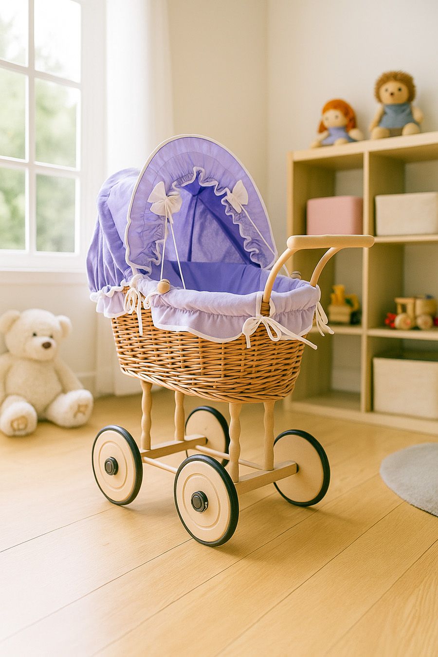 Podaruj swojemu dziecku wyjątkowy prezent! Wiklinowy wózek dla lalek MY SWEET BABY to połączenie tradycji, stylu i jakości. Wykonany ręcznie z naturalnej polskiej wikliny pochodzącej z ekologicznych upraw, zachwyca klasycznym, zaokrąglonym kształtem i dbałością o każdy szczegół.