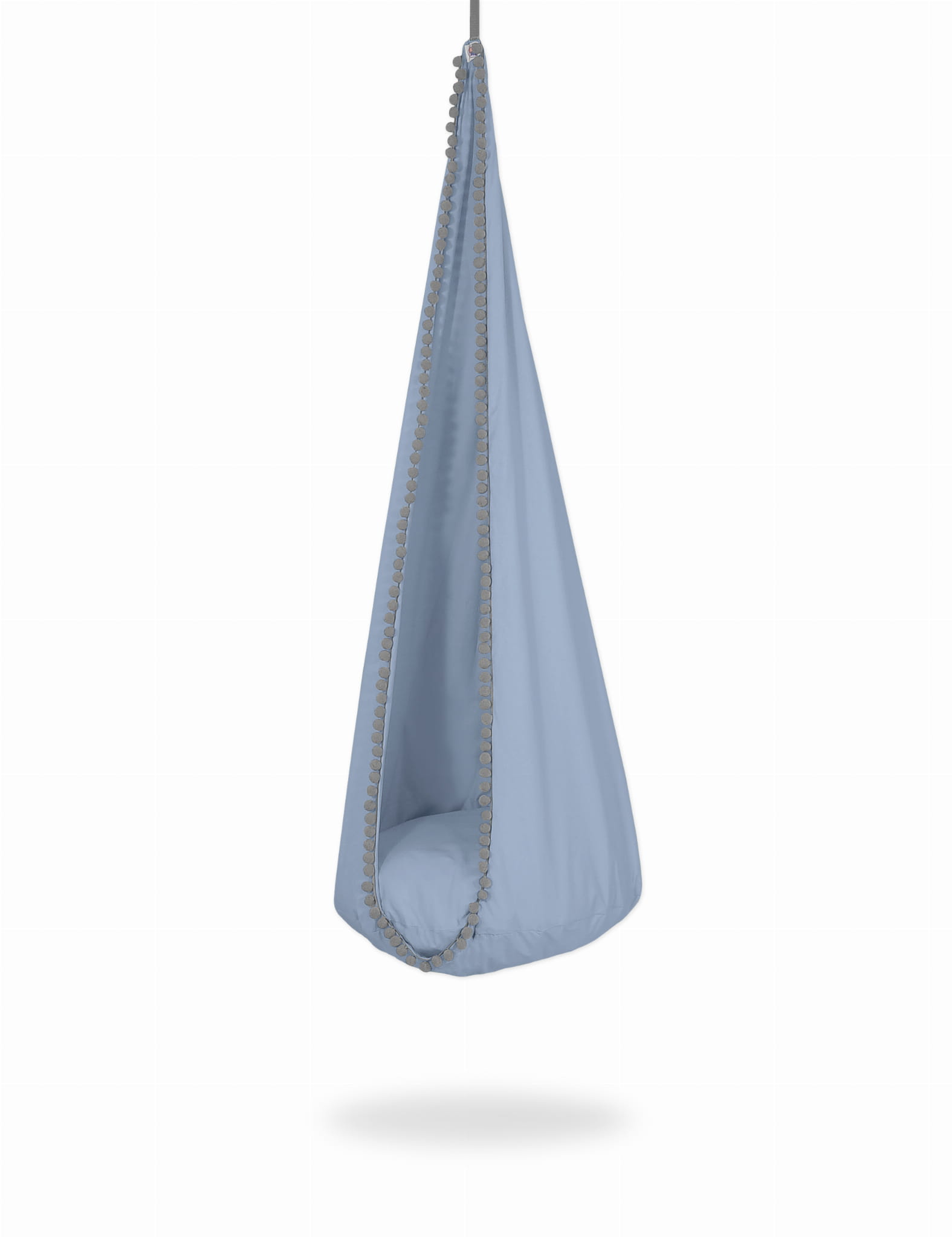 Huśtawka została wykonana w wysokiej jakości bawełny. Dwie warstwy tkaniny zwiększają stabilność i bezpieczeństwo kokonu, mocne taśmy wzmacniają huśtawkę a staranna praca ręczna gwarantuje najwyższą jakość. Kokon ozdobiony dekoracyjnymi pomponami. W komplecie wygodna poduszka dwustronna, rozbieralna do prania. Zewnętrzny pokrowiec zapinany na kryty zameczek, łatwy do ściągnięcia.