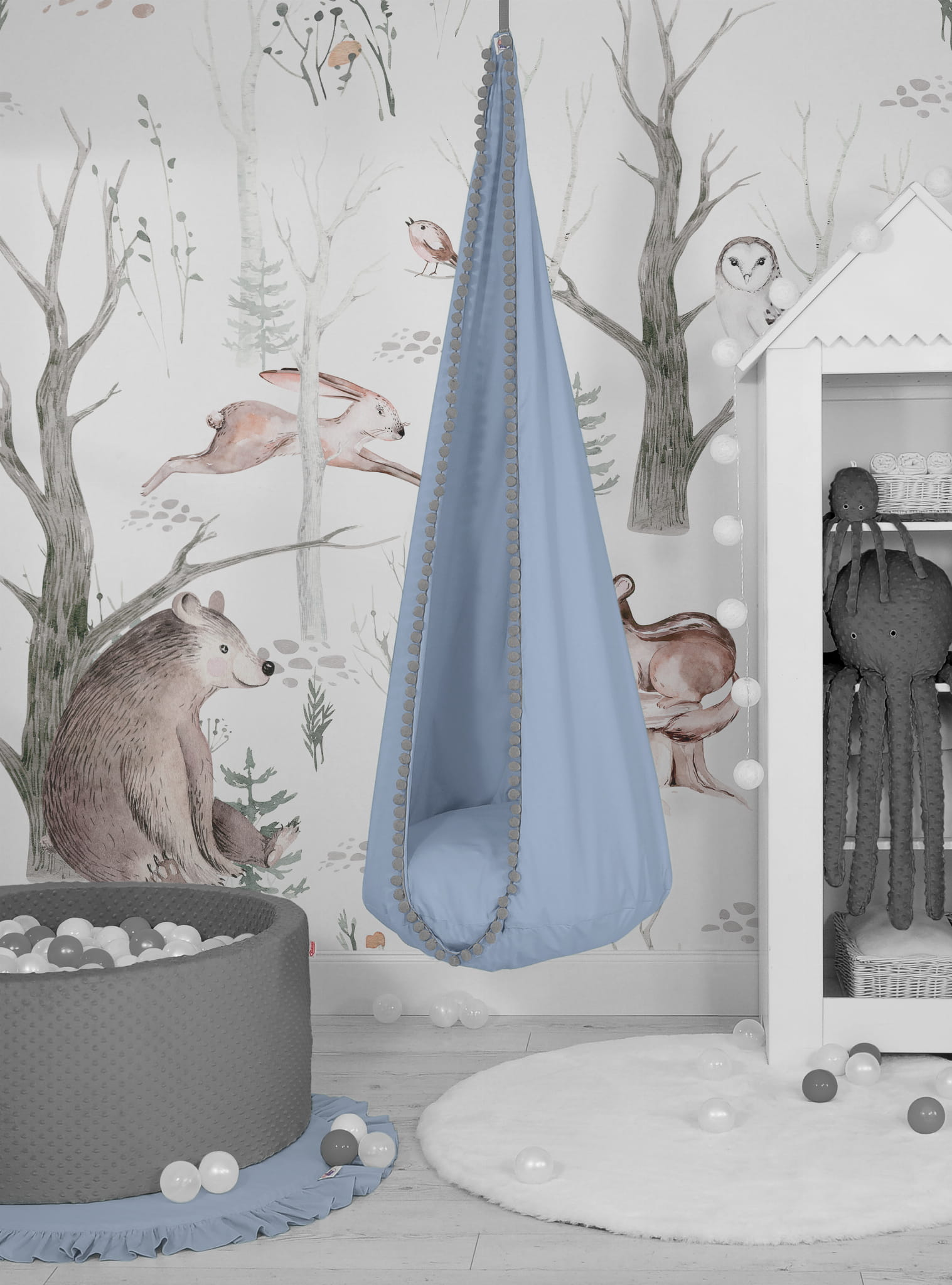 Wisząca huśtawka hamak kokon My Sweet Baby - brudny niebieski