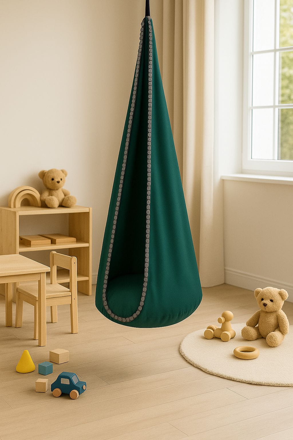 Wisząca huśtawka hamak kokon My Sweet Baby - butelkowa zieleń