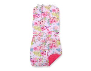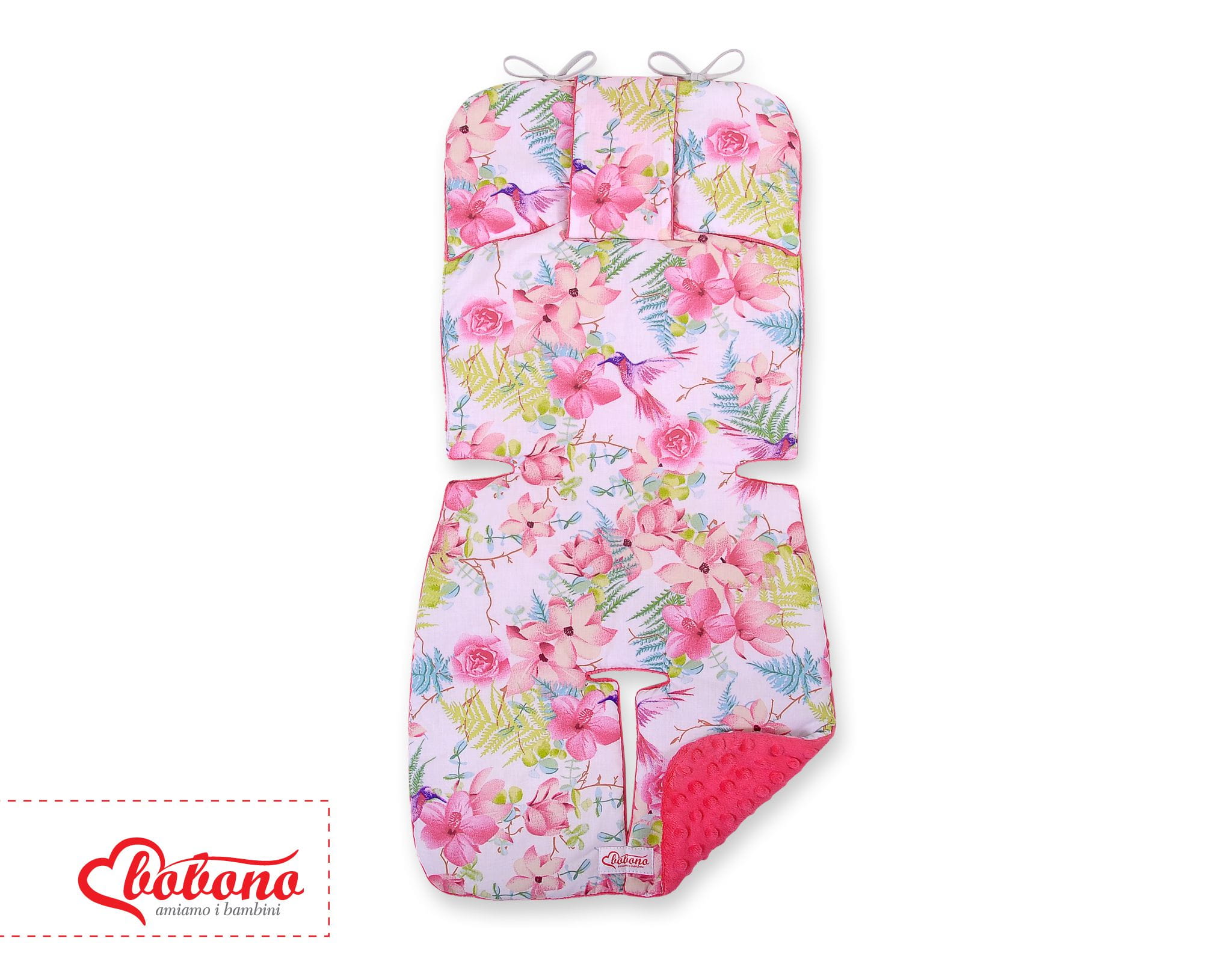 Wkładka do wózka BOBONO minky- koliberki w kwiatach/ciemny róż