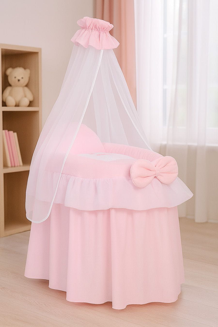 Wózek dla lalek Kosz Mojżesza dla lalek z baldachimem LITTLE PRINCESS różowy