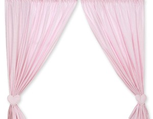 - Oryginalne zasłonki wykonane z tkaniny 100% bawełna, atestowanej. Wykończone najwyższej jakości taśmą marszczącą, co pozwala ozdobnie pomarszczyć zasłonki na dowolną szerokość. Taśma jest tak wszyta, aby maskowała żabki i ładnie się układała. Dodatkowe szarfy i serduszka, znajdujące się w komplecie, pozwalają na dowolne śliczne upięcie zasłonek.