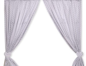 Piękny komplet zasłonek z serduszkami i szarfami do związania po bokach. Wykonane z tkaniny bawełnianej. Góra zasłonek obszyta taśmą do łatwego i równego zmarszczenia. Idealnie uzupełniają pokój dziecięcy tworząc harmonijną całość z pościelą na łóżeczku.