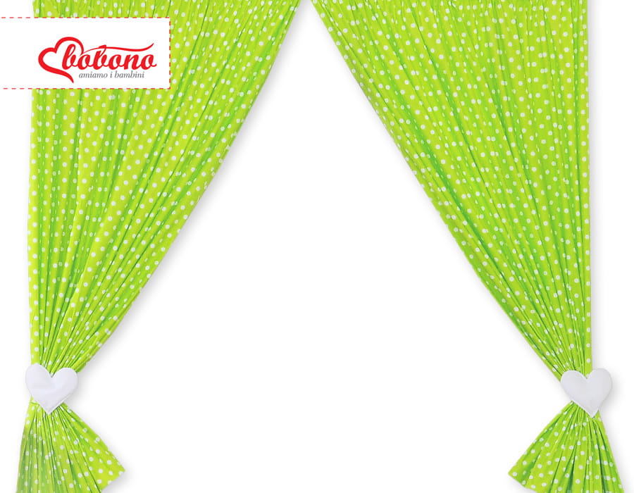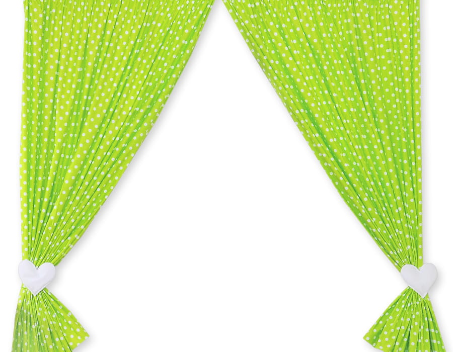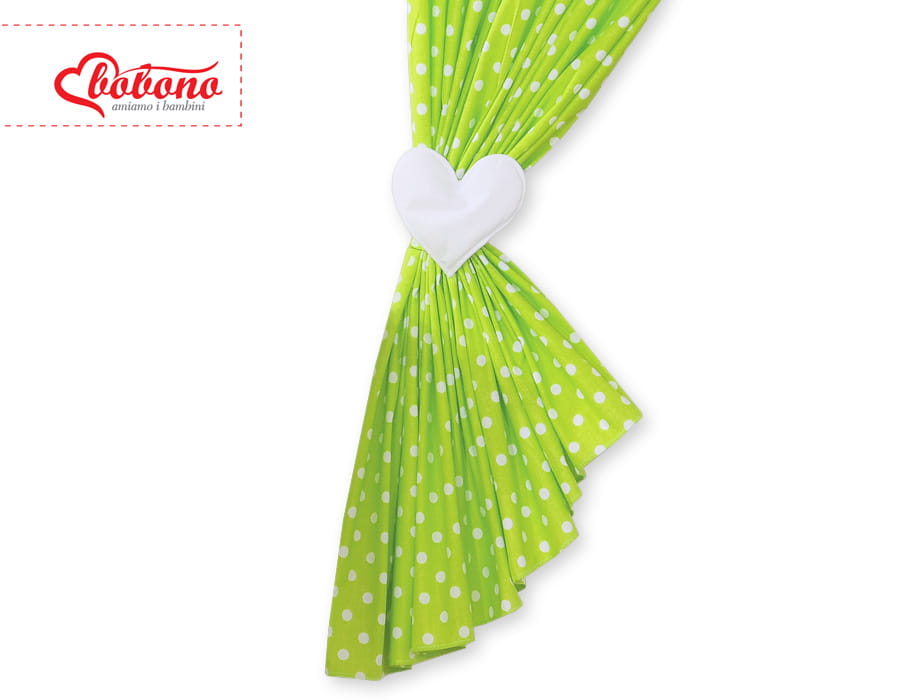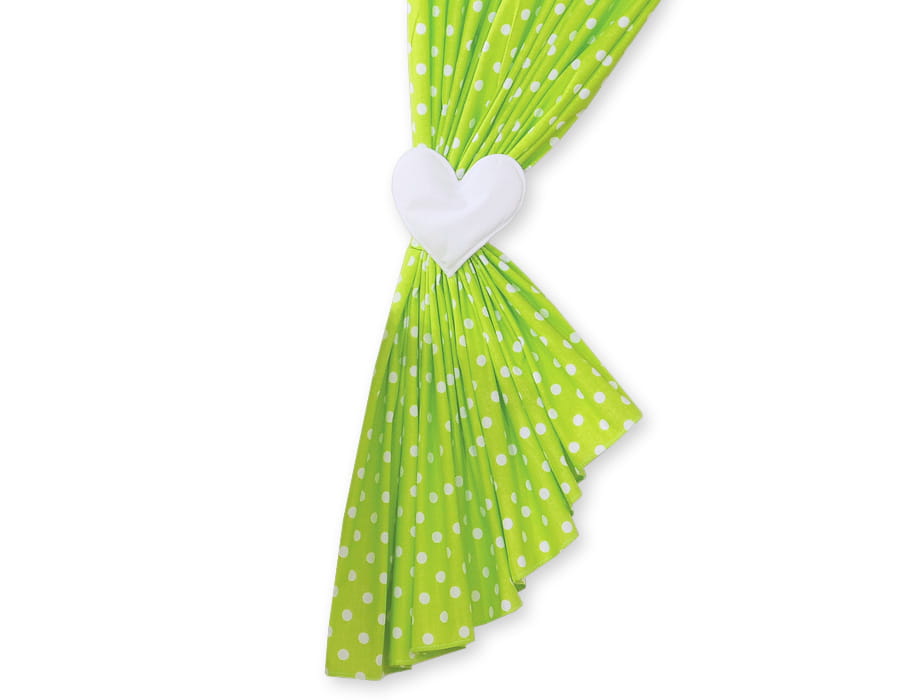 Zasłonki do pokoju dziecięcego- Wiszące serduszka białe grochy na zielonym tle