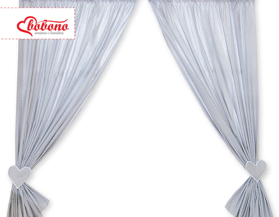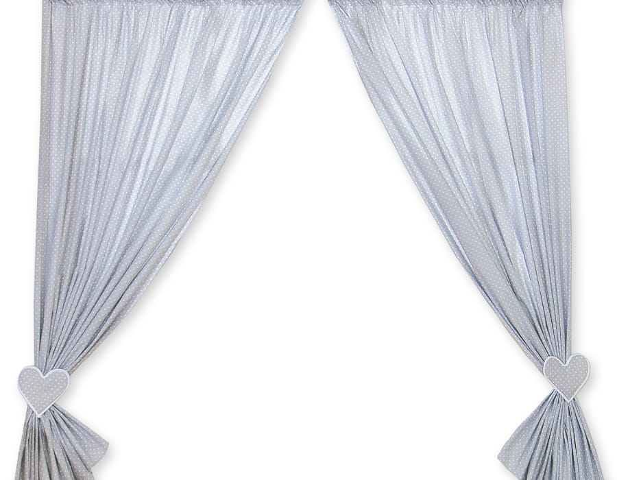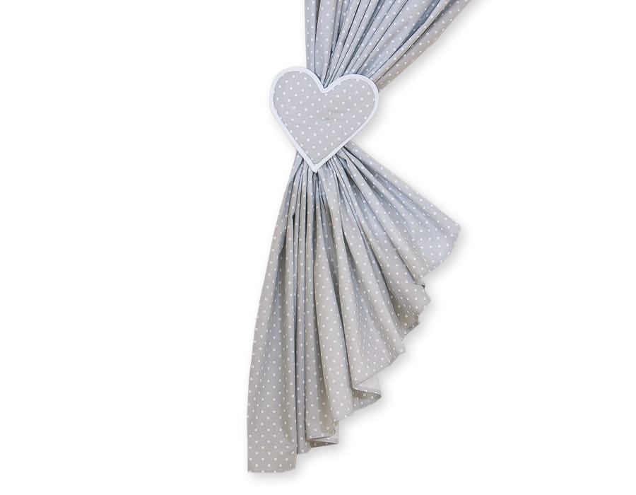 Zasłonki do pokoju dziecięcego- Wiszące serduszka kropki na szarym