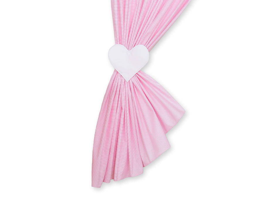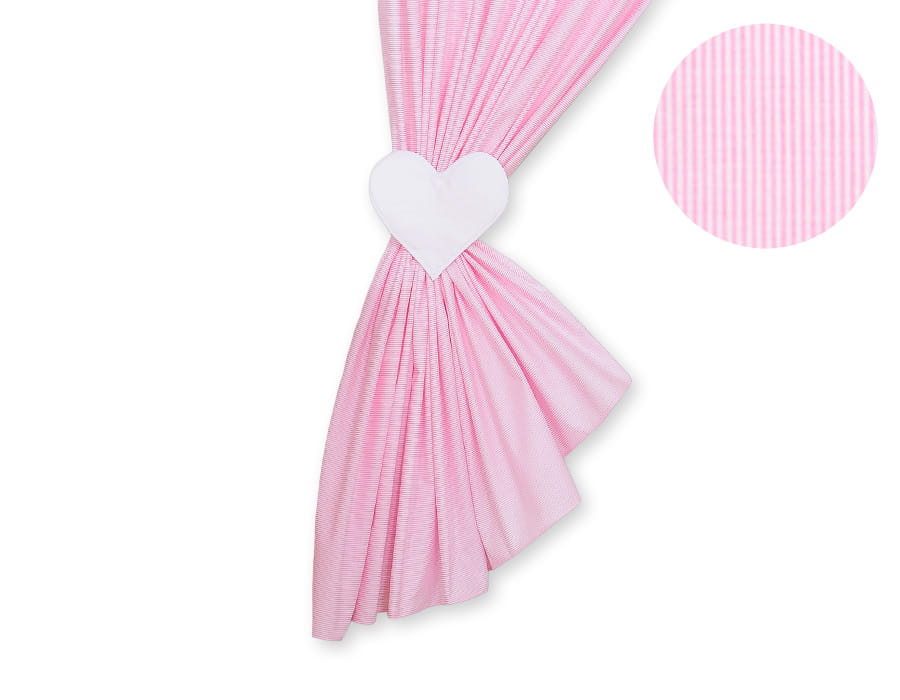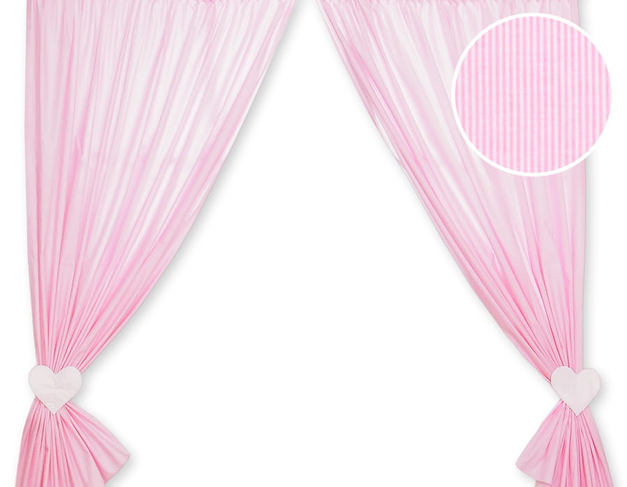 Zasłonki do pokoju dziecięcego- Wiszące serduszka paseczki różowe