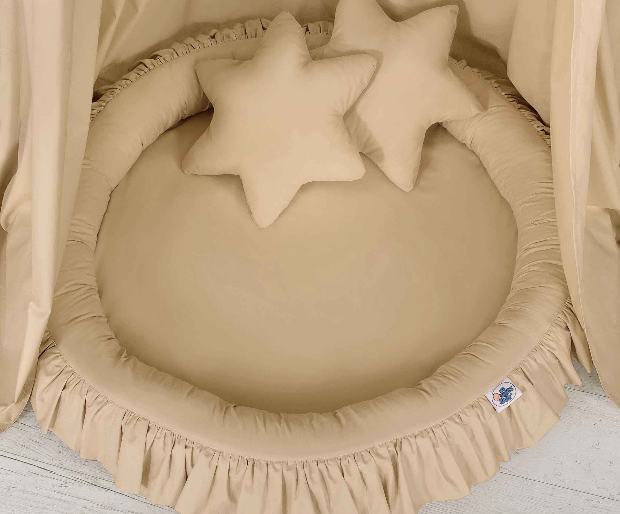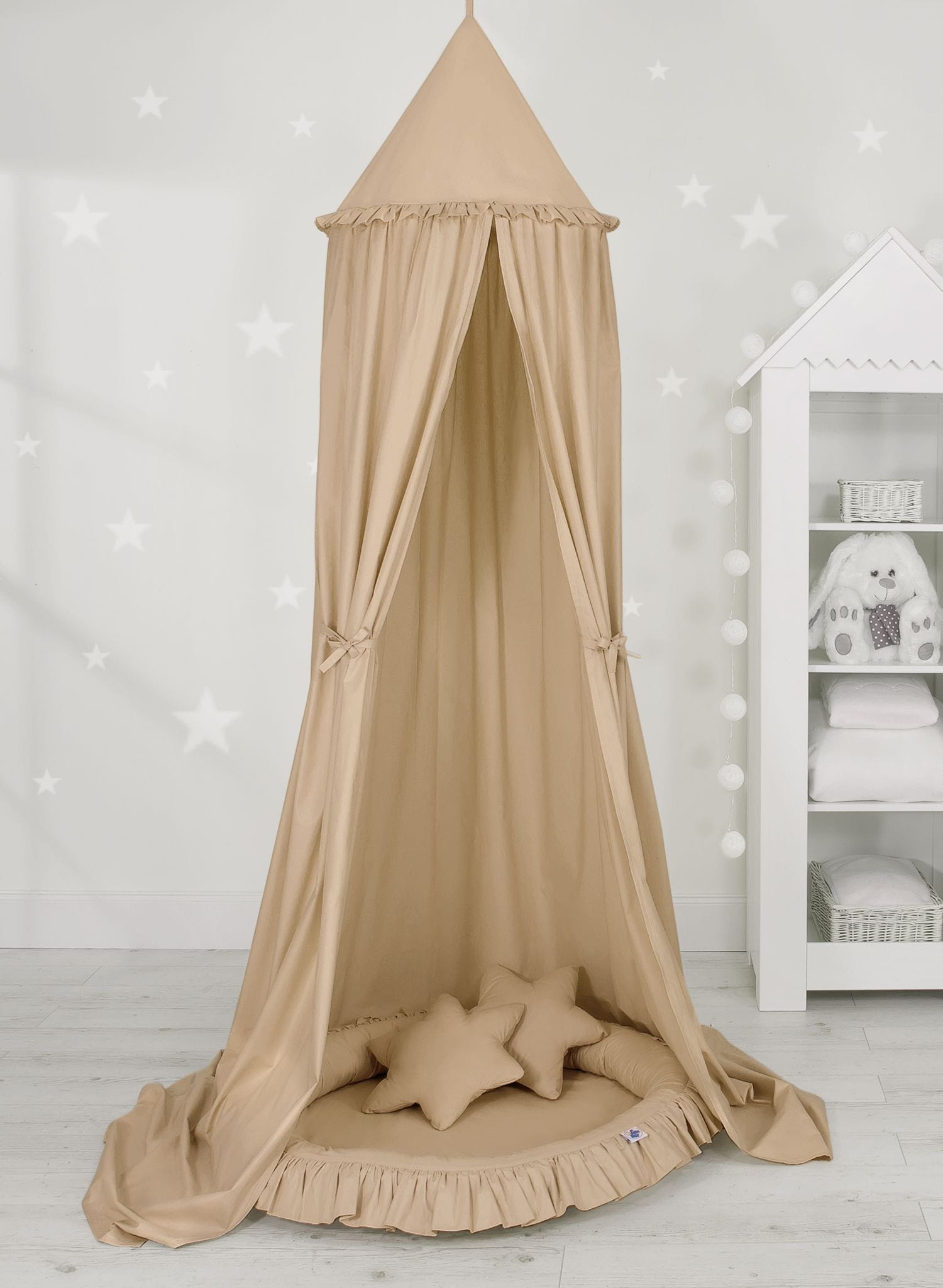 Zestaw: baldachim wiszący do pokoju dziecięcego, gniazdko z falbanką, poduszki - beżowy