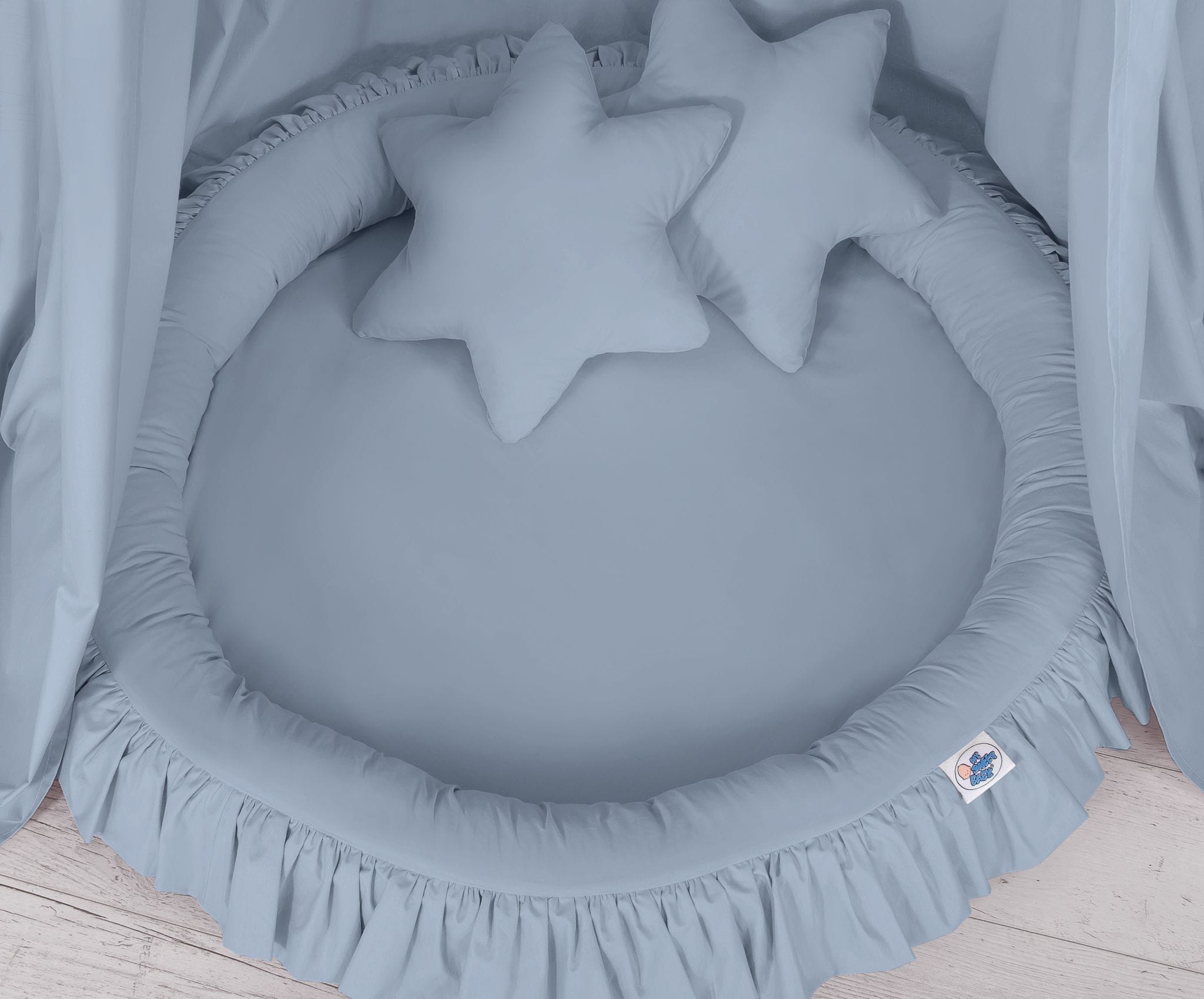 Zestaw: baldachim wiszący do pokoju dziecięcego, gniazdko z falbanką, poduszki - brudny niebieski
