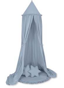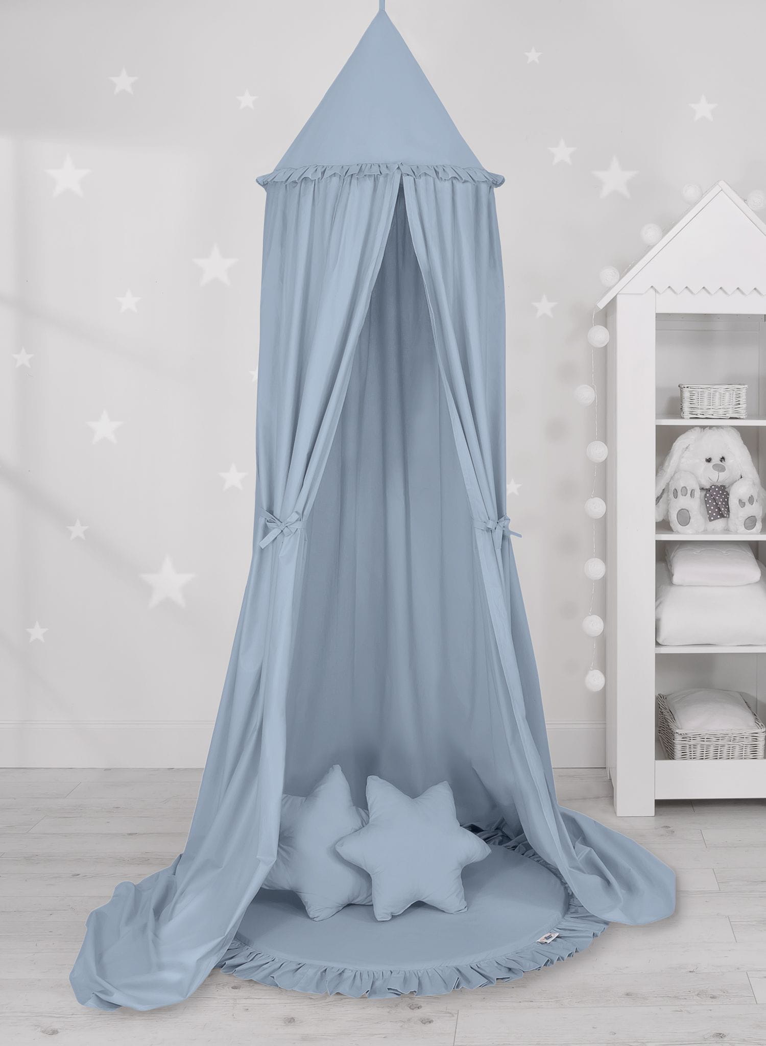 Zestaw: baldachim wiszący do pokoju dziecięcego, mata z falbanką, poduszki - brudny niebieski