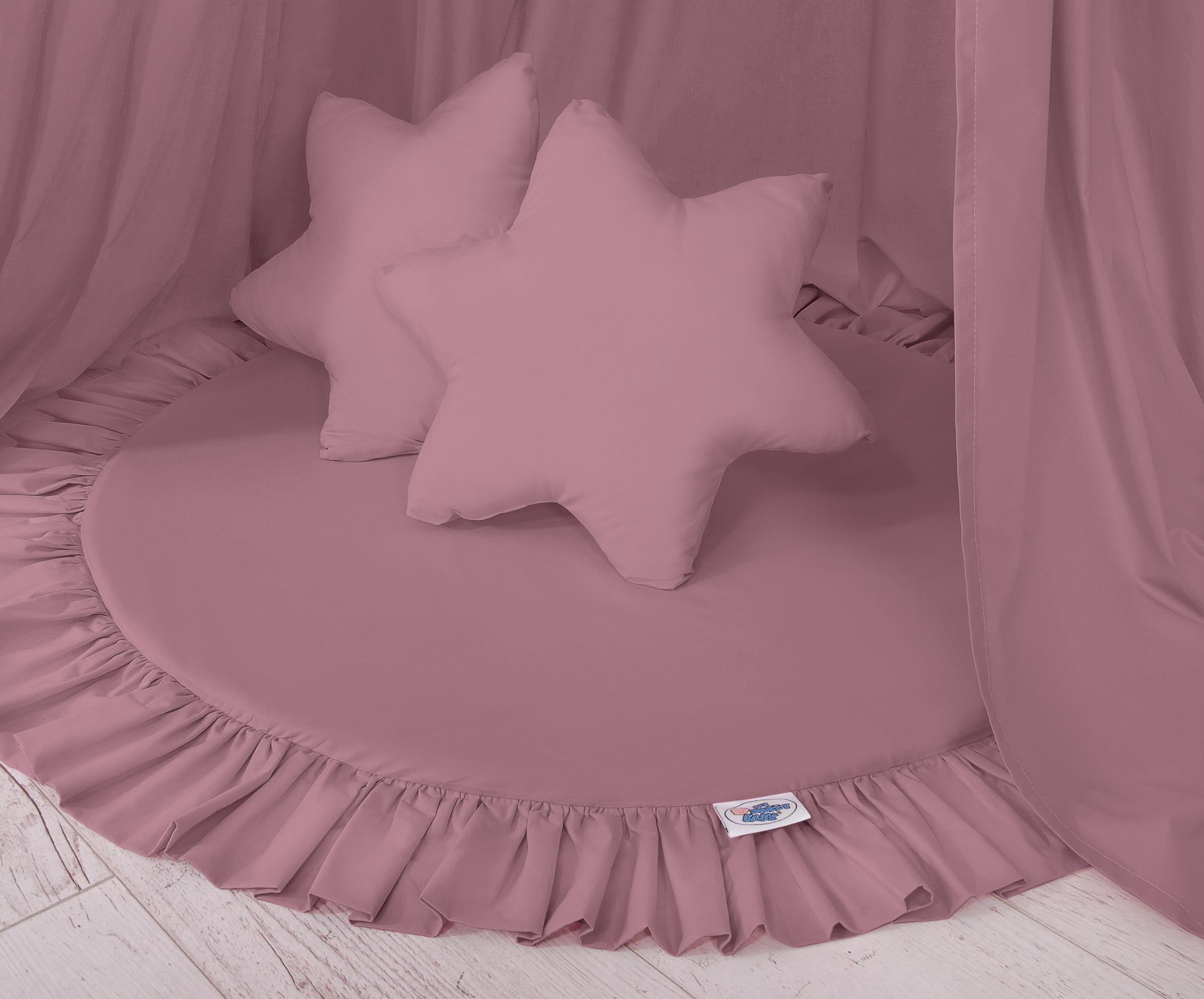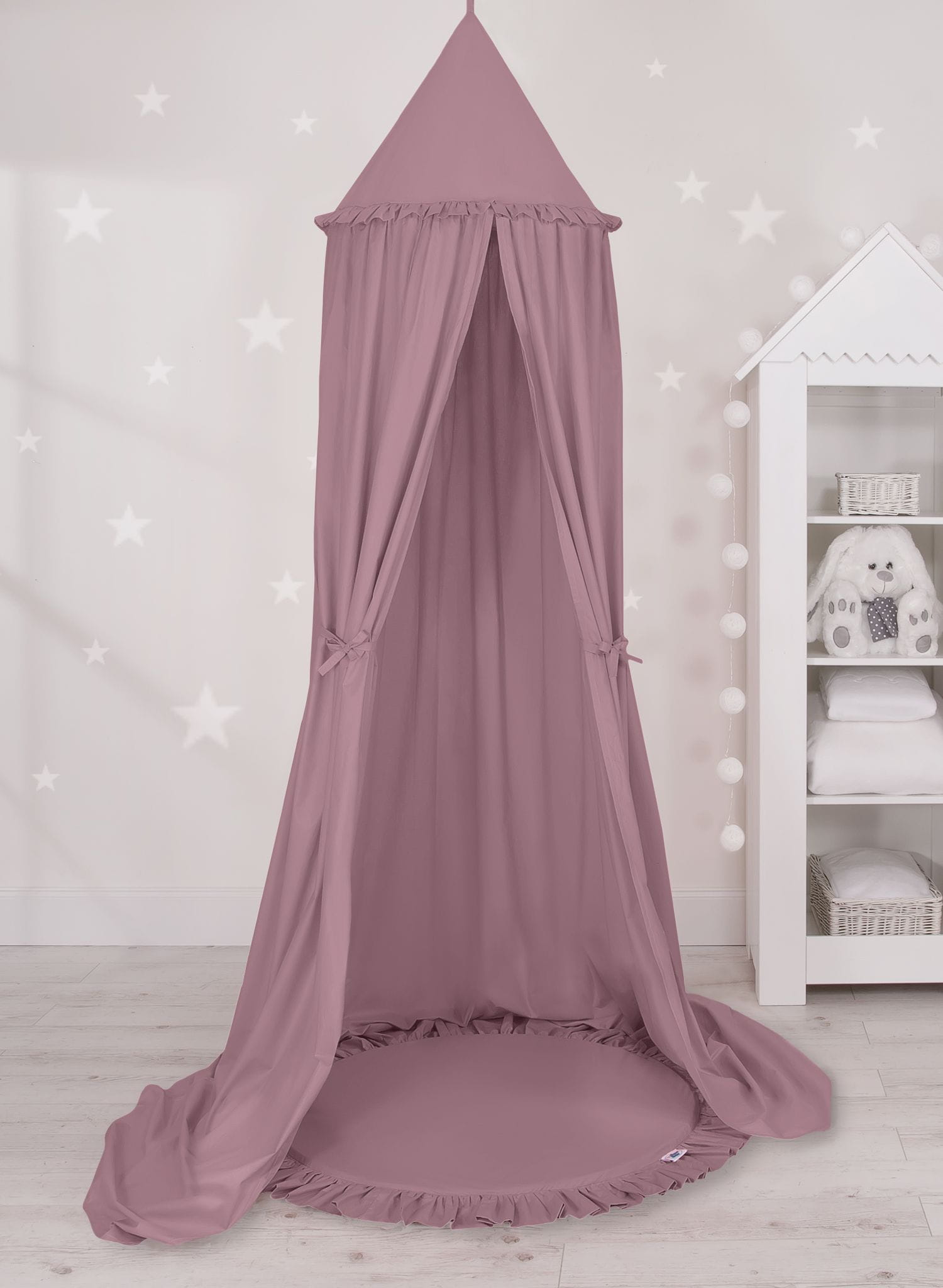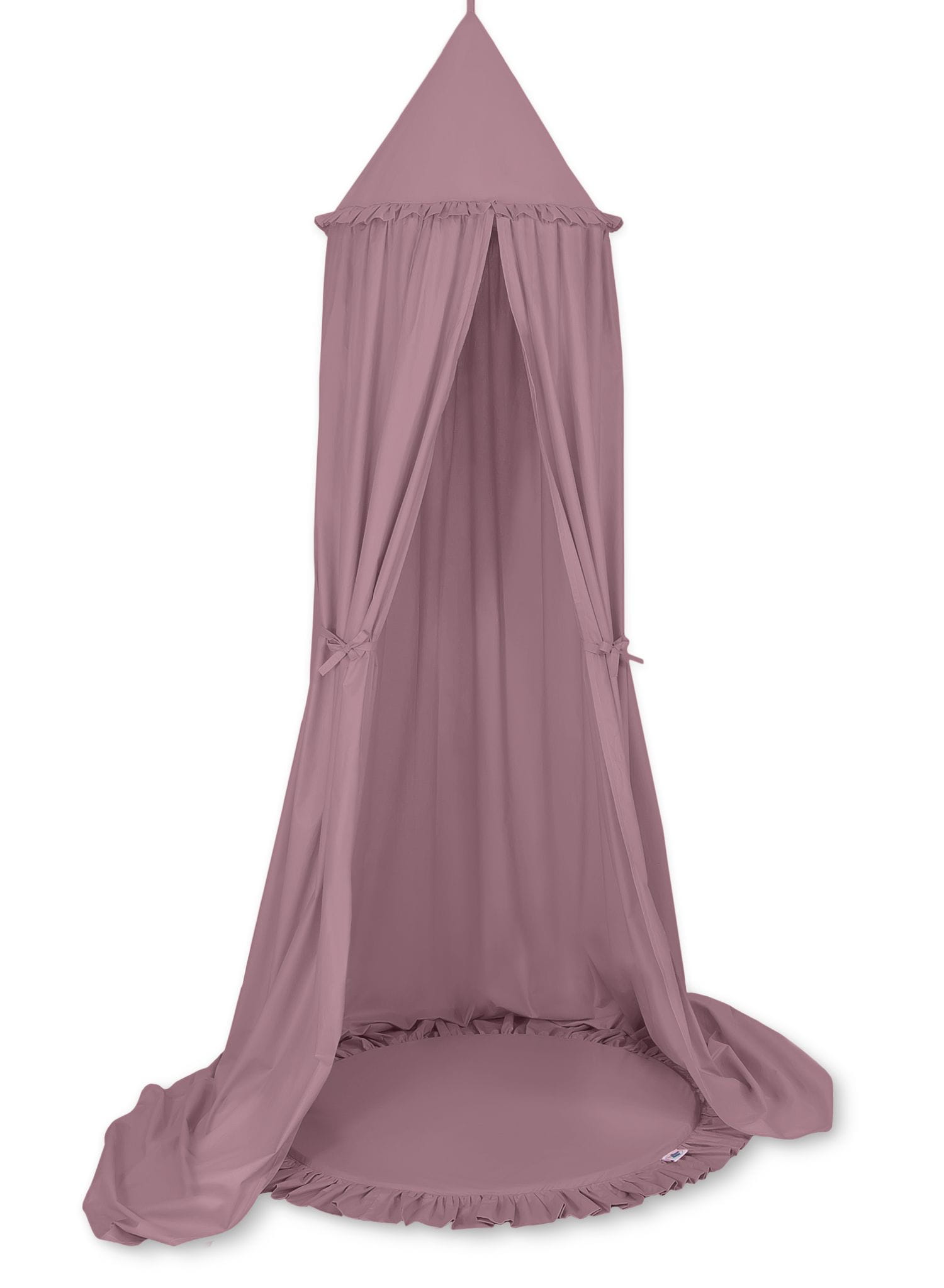 Zestaw: baldachim wiszący do pokoju dziecięcego bawełniany i mata z falbanką - róż retro