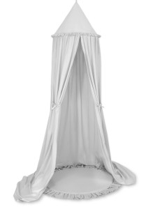 Zestaw: baldachim wiszący do pokoju dziecięcego bawełniany i mata z falbanką - szary